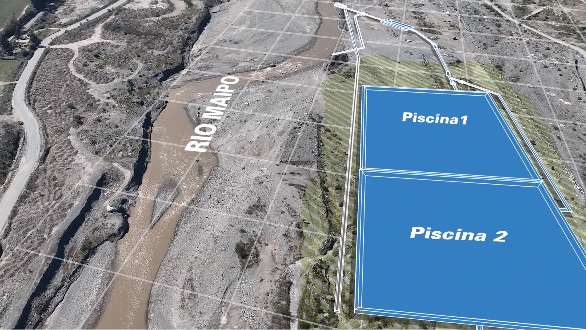 La propuesta de ingeniería de detalle considera dos piscinas que reciben el flujo proveniente de una toma de agua que capta el exceso y lo conduce por un canal que previamente pasa por desarenadores. Desde esas estructuras, el recurso hídrico se infiltra, en tanto el resto del caudal va retornando al río.