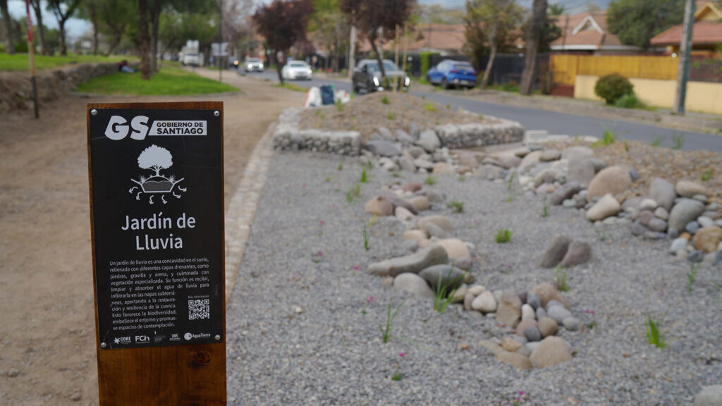 Los jardines de lluvia son una infraestructura verde que permite contener el exceso de agua, recargar las napas subterráneas y mantener la humedad en épocas de sequía. Además, reduce la escorrentía y elimina contaminantes mediante la filtración y la captura de estos mediante la vegetación.
